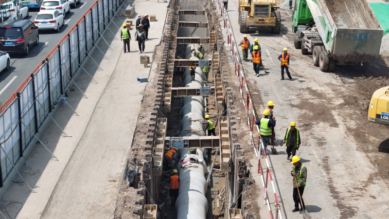 太原市政集團堅決扛牢使命擔(dān)當(dāng),強化統(tǒng)籌、多方聯(lián)動,想盡一切辦法,克服一切困難,全面對標(biāo)看齊“迎澤標(biāo)準(zhǔn)”,堅持以全局觀念和系統(tǒng)思維謀劃推進項目建設(shè),采用半幅封閉施工、平行流水作業(yè)方式,克服工程體量大、施工內(nèi)容繁重、建設(shè)工期緊張等困難與挑戰(zhàn),一體推進道路、管線、照明、沿線景觀等建設(shè)任務(wù)。項目伊始,規(guī)劃“導(dǎo)航圖”,研討節(jié)點安排、工序銜接、資源配置等關(guān)鍵環(huán)節(jié),制定十余套專項施工方案,優(yōu)化組織設(shè)計,形成管理閉環(huán);繪制“進度表”,建立分級負(fù)責(zé)、動態(tài)調(diào)整的進度管控體系,提升9個工區(qū)自主管理效能,錨定工期目標(biāo),加快施工效率。施工過程中,掃清“攔路虎”,采用鋼板樁支護、分層開挖、放坡開挖工藝,克服地下管線復(fù)雜、開挖深度大、地下水高等難點,確保管網(wǎng)升級與地鐵運營和諧并行;保持“攻堅態(tài)勢”,針對重難點部位,提前制定專項方案,全部進行技術(shù)交底,著重加強安全、質(zhì)量管控,形成高效施工態(tài)勢。注重以人為本,提升“施工溫度”,細(xì)化各項便民、利民措施,最大限度降低對市民日常生活的影響,保障通行需求;擦亮“市政名片”,開展道路清理志愿服務(wù)活動,用實際行動為城市“美容”,展現(xiàn)國企擔(dān)當(dāng)。