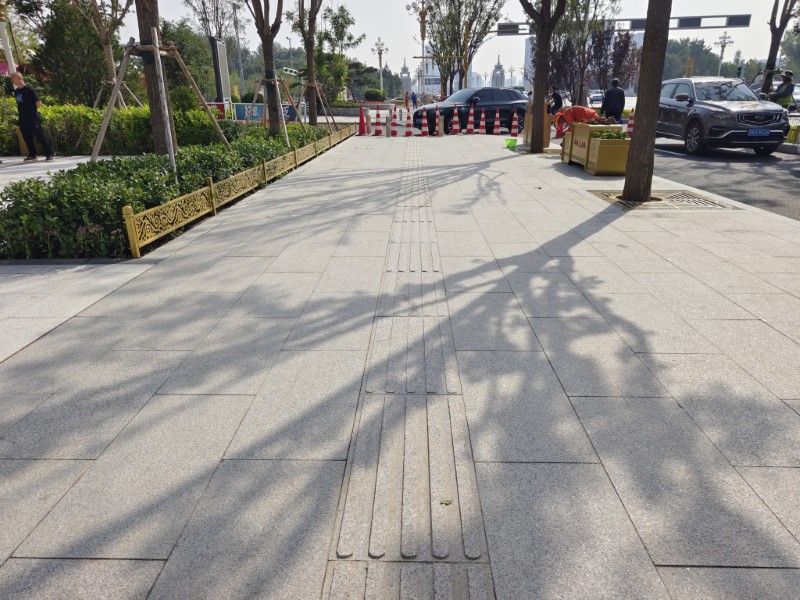 漫步在嶄新的大街上,目光所及之處,皆是精益求精的印記。道路之舒,成于“毫米級(jí)”的精準(zhǔn)把控。施工期間,測(cè)量員們頂著烈日反復(fù)校驗(yàn)基準(zhǔn)線,施工人員緊盯碾壓遍數(shù)、實(shí)時(shí)檢測(cè)溫度變化,精準(zhǔn)調(diào)控機(jī)械參數(shù),細(xì)致觀察路面成型狀態(tài),以雕琢藝術(shù)品的嚴(yán)謹(jǐn),執(zhí)著于每一寸路面的平整度。如今,瀝青路面黝黑發(fā)亮,平整如鏡,為市民提供了平穩(wěn)舒適的出行體驗(yàn)。這背后,是無數(shù)次的測(cè)量、復(fù)核與調(diào)整,是對(duì)“毫米級(jí)”標(biāo)準(zhǔn)的執(zhí)著追求。路面之穩(wěn),源于看不見的“精細(xì)打磨”。以往容易產(chǎn)生異響和顛簸的檢查井蓋,如今,它們已與路面完美契合,渾然一體。市政人創(chuàng)新工藝,全程采用三米直尺嚴(yán)格檢測(cè)井具與瀝青路面的銜接平整度,對(duì)井周進(jìn)行精細(xì)找平加固,顯著提升了行車安全與舒適度。設(shè)施之雅,藏在細(xì)節(jié)里的“民生溫度”。道路品質(zhì)不僅在于行車體驗(yàn),更體現(xiàn)在人性化與美觀化兼具的附屬設(shè)施。人行道磚平整牢固,灌縫飽滿均勻;路緣石鋪設(shè)筆直如線,接縫打膠平滑嚴(yán)密;阻車樁全面清潔,堅(jiān)實(shí)穩(wěn)固;迎澤大街石磚鋪設(shè),描畫精細(xì),字跡清晰。游園新增的石桌石凳、柔和地?zé)舻仍O(shè)施,打造了溫馨舒適的開放空間。建成后的迎澤大街(西段)“口袋公園”便民化、街角綠地景觀化、公交站臺(tái)智能化……已然成為市民閑庭漫步新去處。